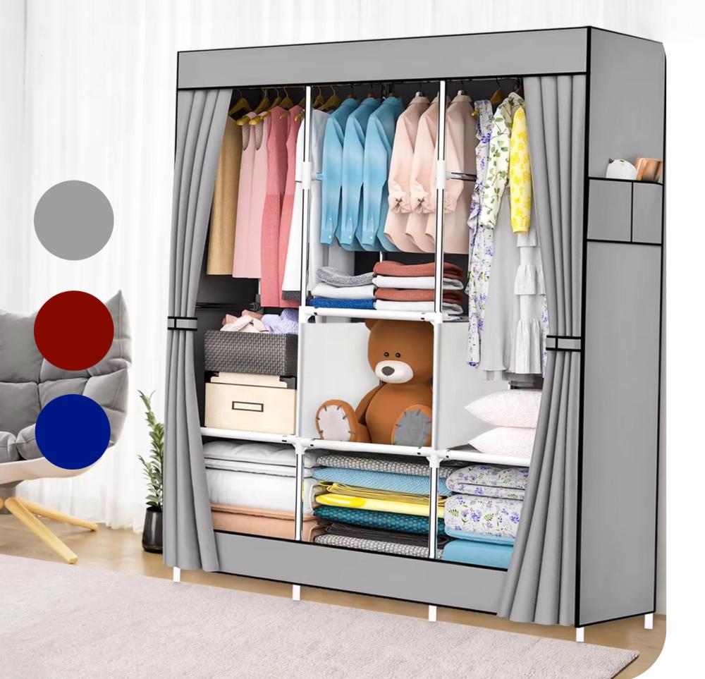 • تنظيم ملابسك أصبح أسهل مع خزانة ملابس قماش بمقاس 170*45*128 سم. تصميم عملي، سعة كبيرة، وهيكل متين يضمن لك ترتيب ملابسك بأناقة وحفاظاً على المساحة في أي غرفة.