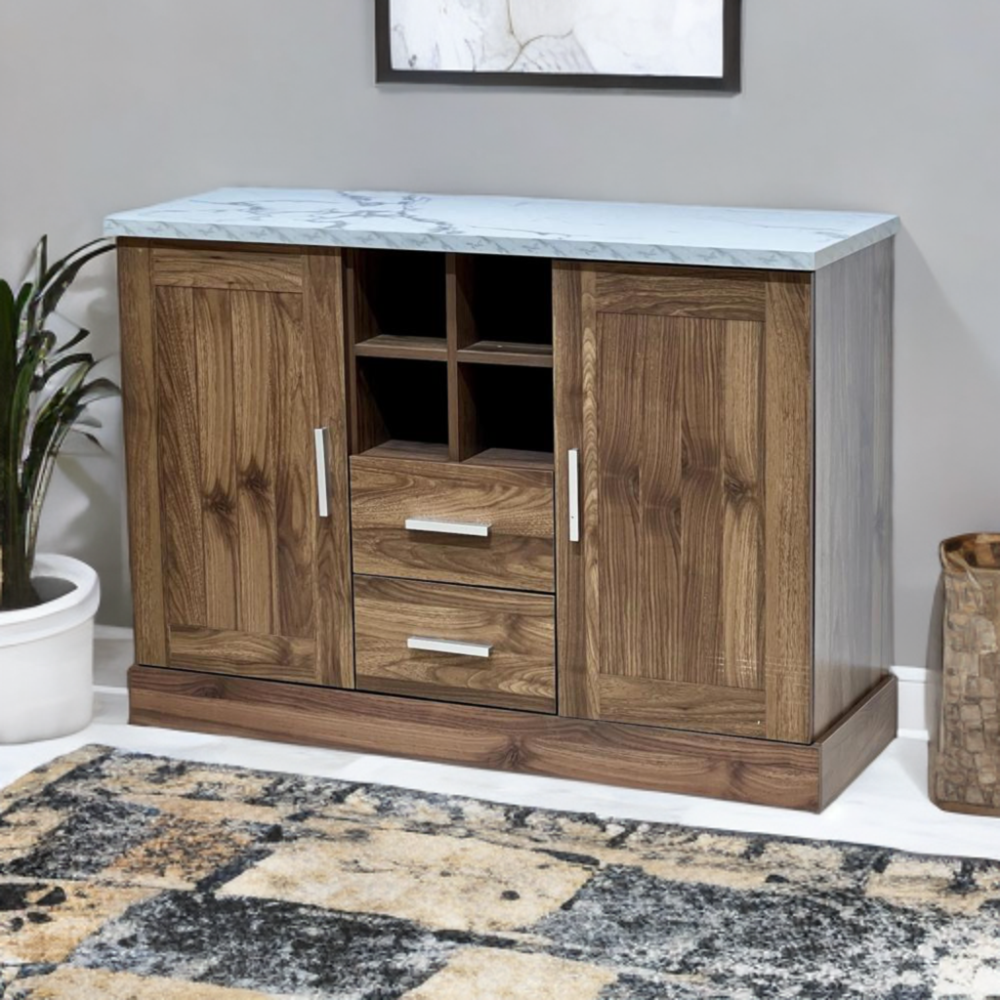 • توفر هذه الخزانة عددًا من الأرفف والأدراج التي تساعد في ترتيب مستلزمات القهوة، او سفرة الطعام او التحف والمقتنيات وهذا يحافظ على المساحة منظمة وخالية من الفوضى.