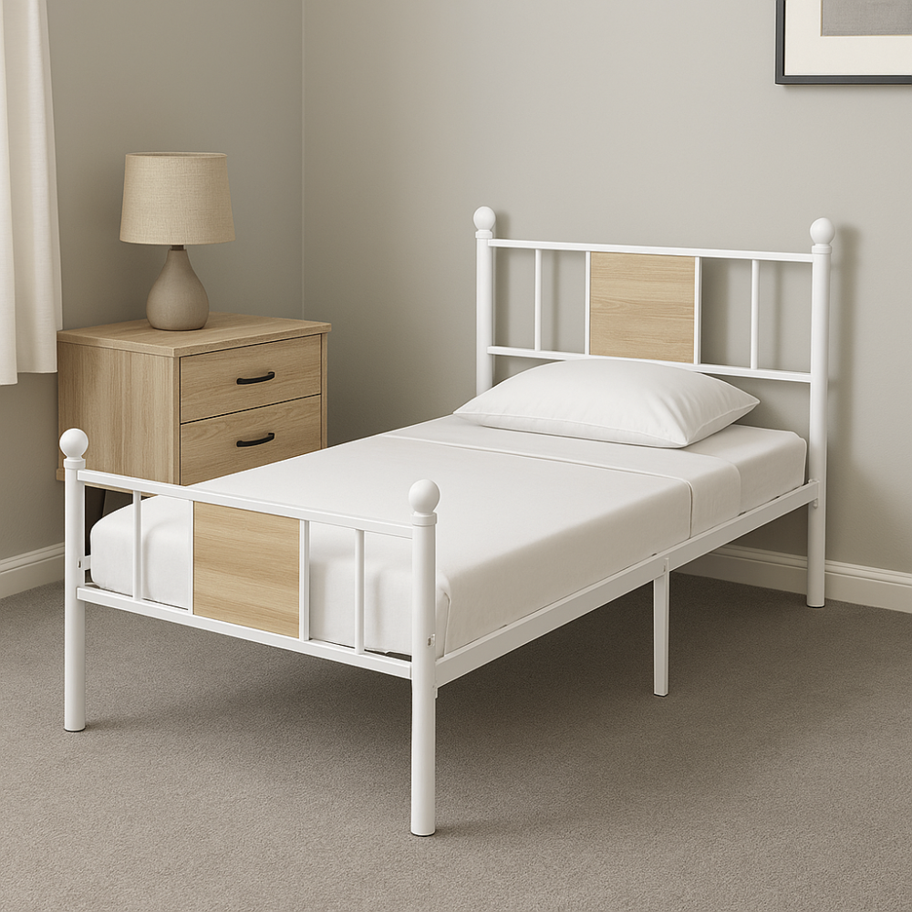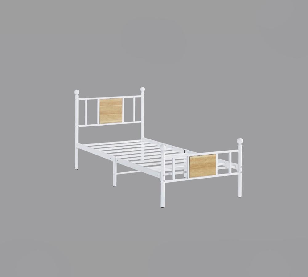 سرير معدني بإطار حديدي أبيض مع لمسات خشبية 200*90