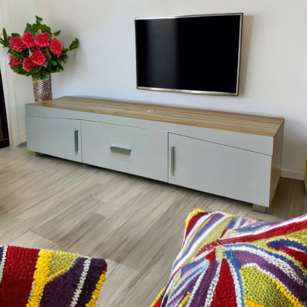 - اجمع بين التنظيم والأناقة في طاولة تلفاز خشب بخامات قوية وتصميم هندسي دقيق لتناسب غرف المعيشة الحديثة والمكاتب المنزلية.