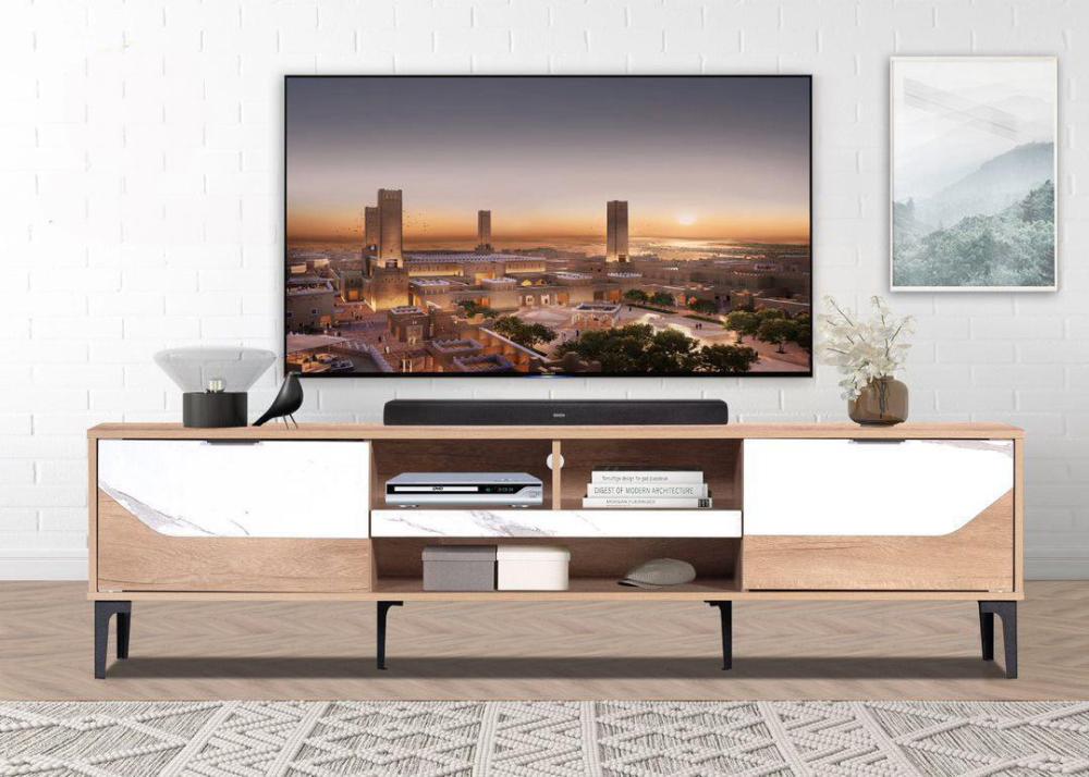 مميزات طاولة تلفزيون خشب ماليزي لون بيج وأبيض مقاس 180cm