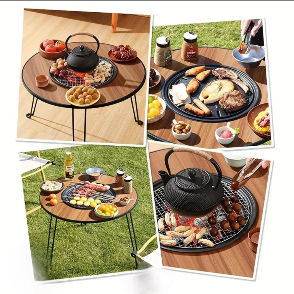 طاولة بتصميم دائري يسمح لأحبائك بالجلوس معًا والاستمتاع بالطعام أثناء الشواء دون الشعور بالوحدة فهي طاوله ضرورية ومثالية لتجمعات العائلة في الهواء الطلق ، وهي ذات حجم يجعلها عملية وسهلة التركيب مما يتيح لك الاستمتاع باستخدامها في الرحلات واماكن التنزه وحديقة المنزل دون عناء و تتكون الطاولة من ارجل متينه قابلة للطي وسطح بعرض 60 سم يوفر مساحة للشواء ويمكن استعمالها لتحضير الشاي والقهوة كما أن تصميم الغطاء المطاطي المانع للانزلاق بجعلها مناسبه لجميع الأماكن .