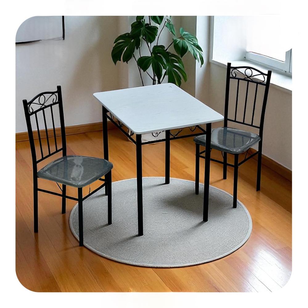 طقم طاولة طعام خشبية بأرجل معدنية مصممة لتضفي لمسة أنيقة على منزلك وتكفي لشخصان يتناولون الطعام والقهوة بهدوء فهي متاحة بعدة الوان عصرية حيث يجمع التصميم بين الشكل الكلاسيكي للخشب والجودة، وبالتالي يجعلها مناسبة لمختلف أنماط الديكور سواءً في المطابخ الصغيرة أو غرف الطعام العائلية.