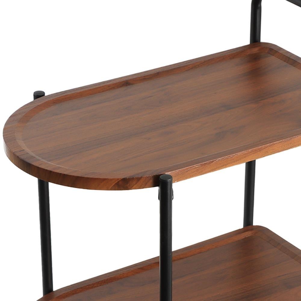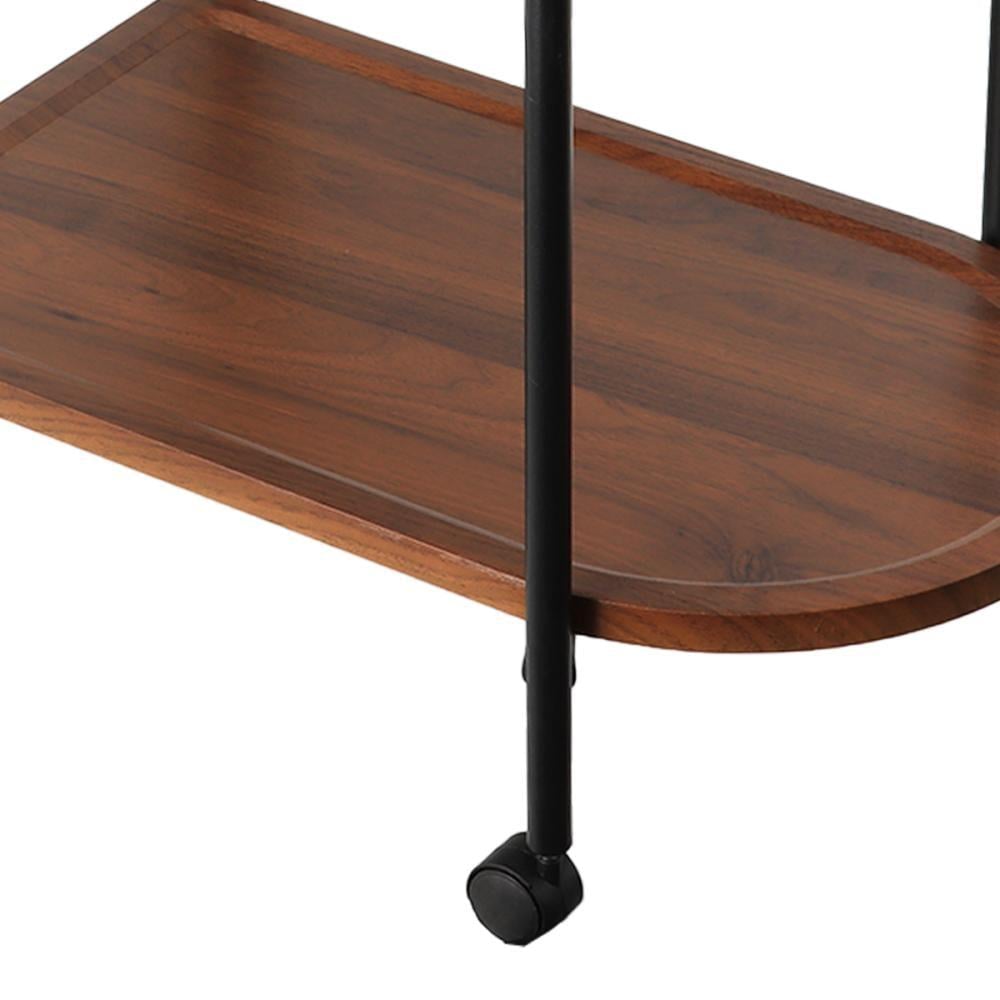 طاولة متحركة مودرن للضيافة والتقديم 2 رفوف تنظيم , سطح خشبي وقاعدة معدن - بني غامق