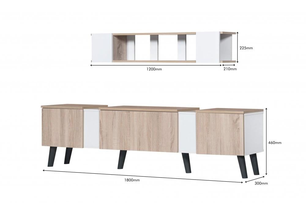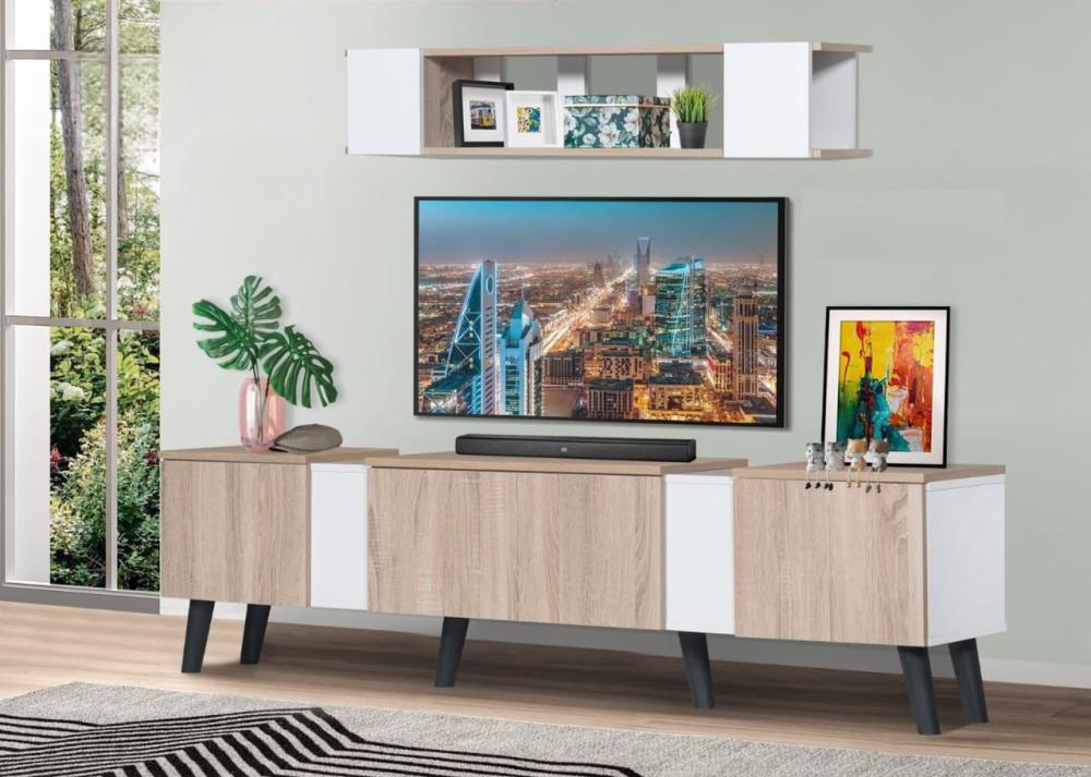 - النوع : طاولة تلفزيون خشبية تحتوي على: