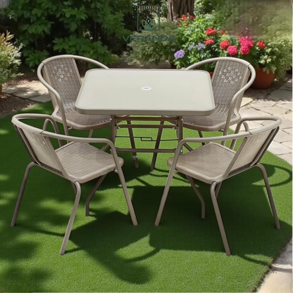 لا تفوت فرصة امتلاك " طقم جلسة خارجية مربع 4 كراسي لون بيج " التي تجمع بين الجمال والراحة، قم بطلبها اليوم من المتجر الذهبي واستمتع بتجربة استخدام لا مثيل لها.