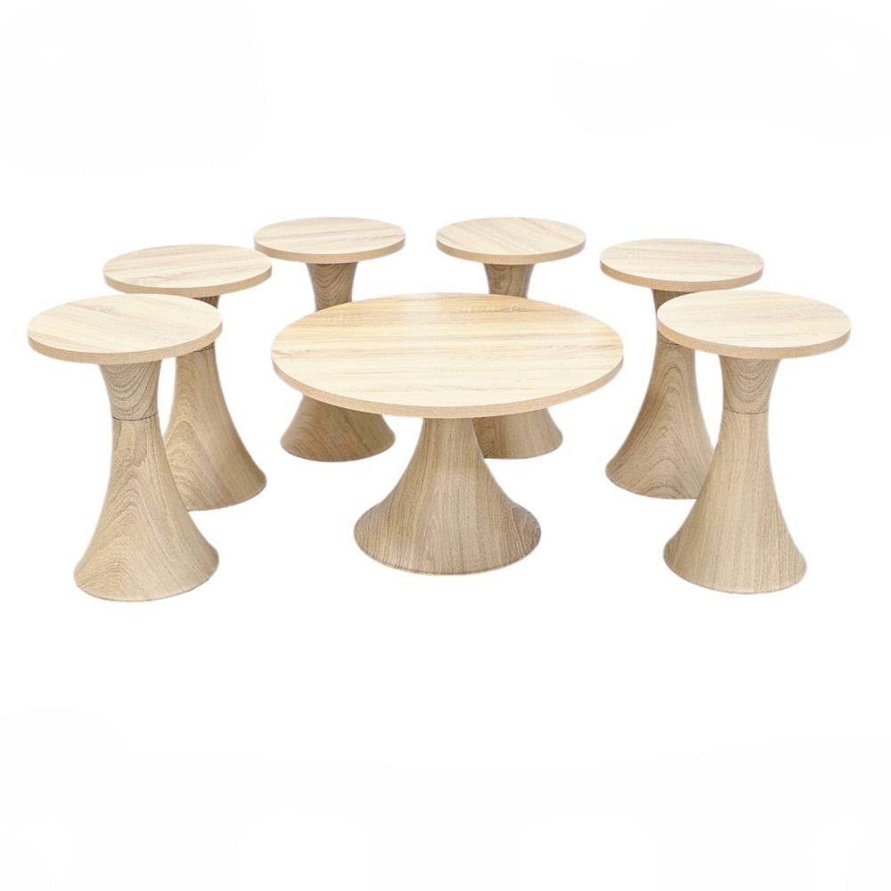 - الطاولة الكبيرة: القطر 80 سم × الارتفاع 45 سم.