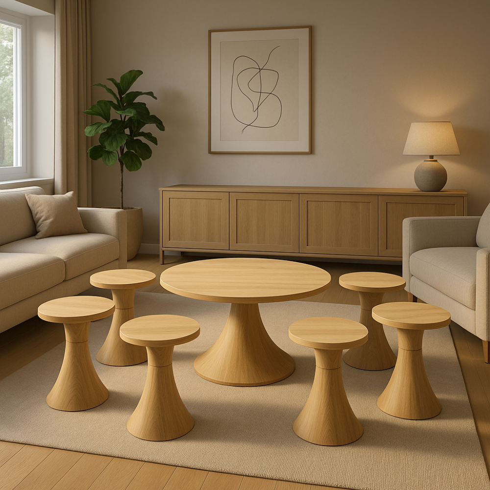 طقم طاولات جانبية أنيق بتصميم عصري وبسيط يجمع بين العملية والجمال. مصنوع بالكامل من الخشب الطبيعي الفاتح الذي يمنح شعورًا بالدفء ويضفي لمسة طبيعية وهادئة على أي مساحة داخل المنزل أو المكتب.