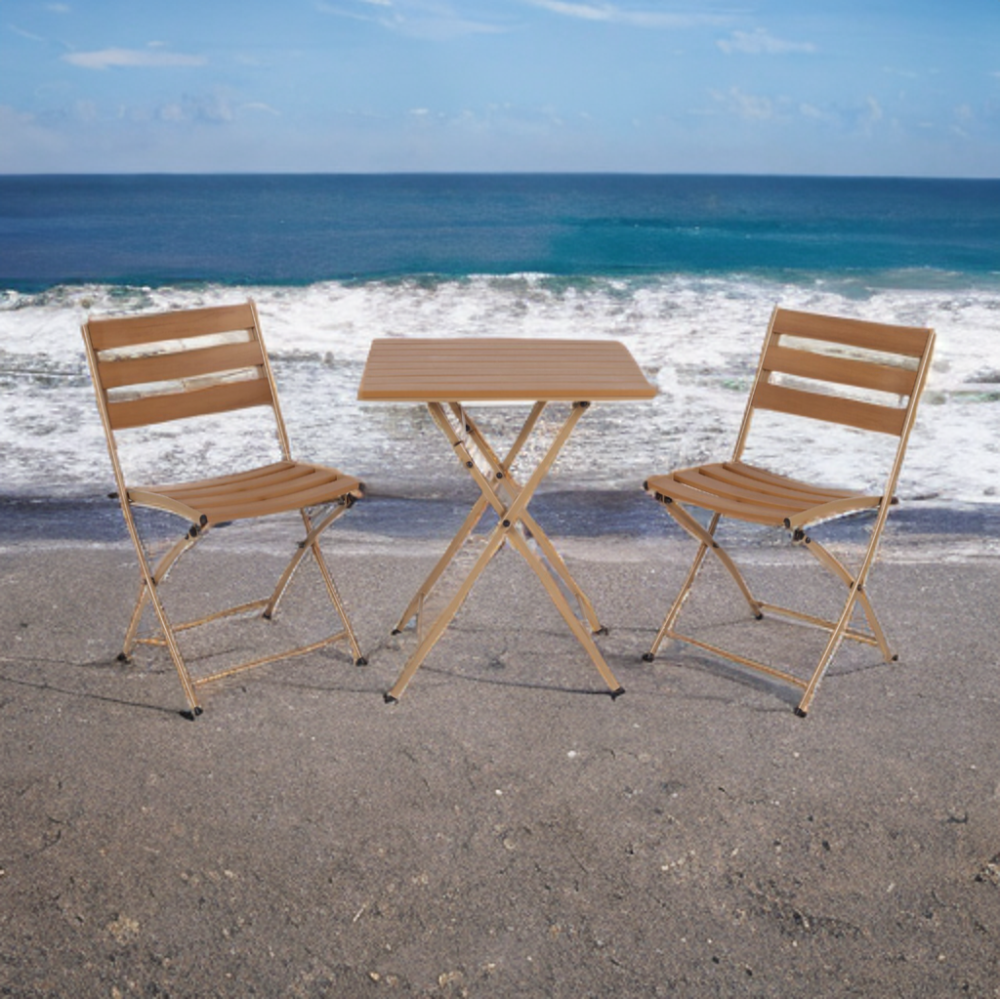 - الطاولة و الكرسيان مصنعه من مواد متينة وخفيفة الوزن ليسهل حمله .