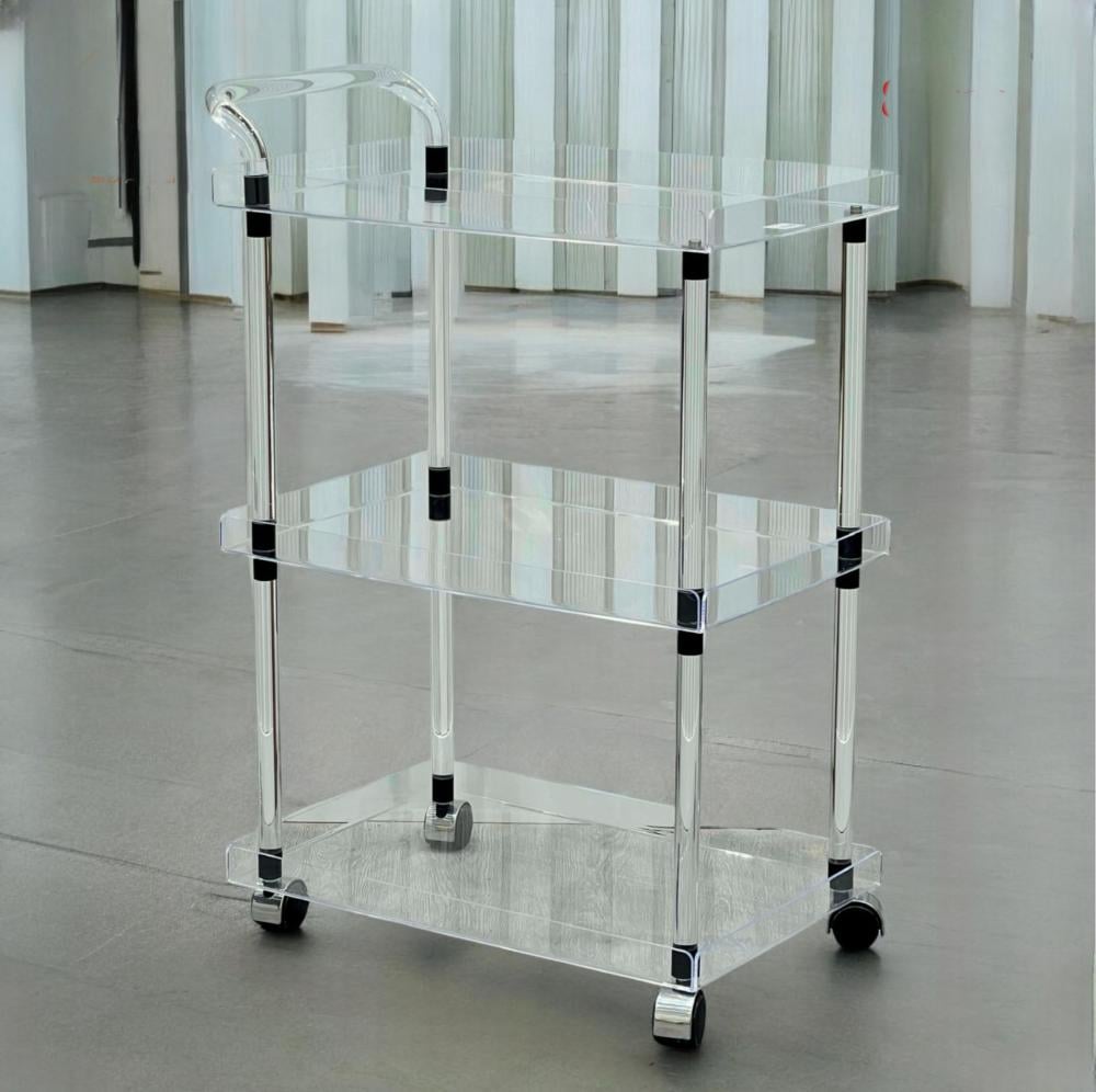 أضيفي لمسة من الأناقة والعملية إلى منزلك مع عربة التقديم الأكريليك، المصممة خصيصًا لتلبية احتياجاتك في تقديم الطعام والمشروبات بطريقة مميزة. تتميز هذه العربة بتصميمها العصري والشفاف. مصنوعة من أكريليك عالي الجودة، فهي خفيفة الوزن ومتينه ومزودة بعجلات مما يسهل نقلها من مكان لآخر. مثالية للمناسبات، الحفلات، أو حتى للاستخدام اليومي في المنزل. لا تفوت الفرصة للحصول على هذه العربة الفاخرة.