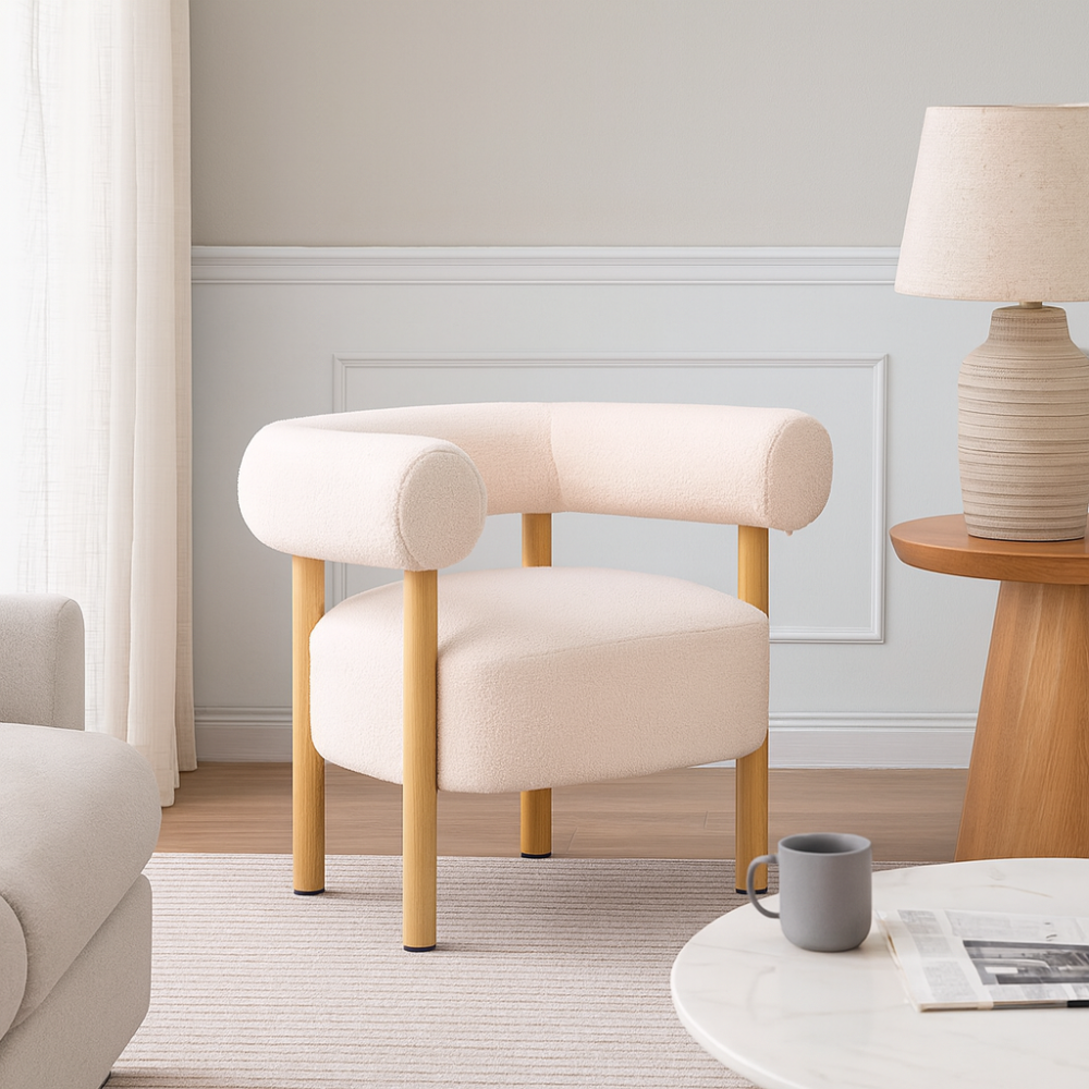 كرسي أنيق بتصميم عصري ومريح، يجمع بين الفخامة والبساطة. يتميز بمقعد إسفنجي ناعم مغطى بقماش مخملي بلون فاتح، مع مسند ظهر أسطواني الشكل يمنح دعمًا إضافيًا للظهر، وأرجل خشبية قوية تضيف لمسة طبيعية ودافئة للمكان. يُناسب غرف المعيشة، غرف النوم، المكاتب، أو حتى المقاهي الراقية.