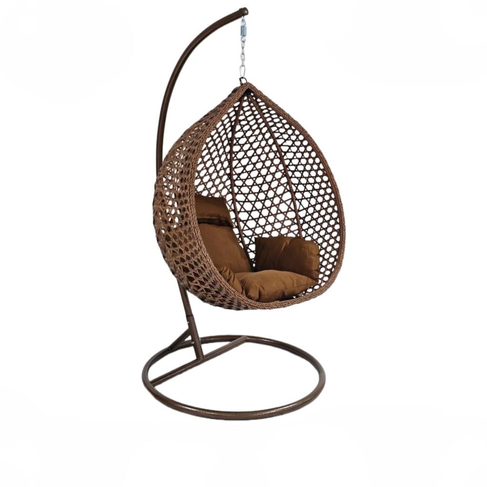 كرسي مرجيحه معلق بيضاوي شبكي مع وسادة داخلية بني