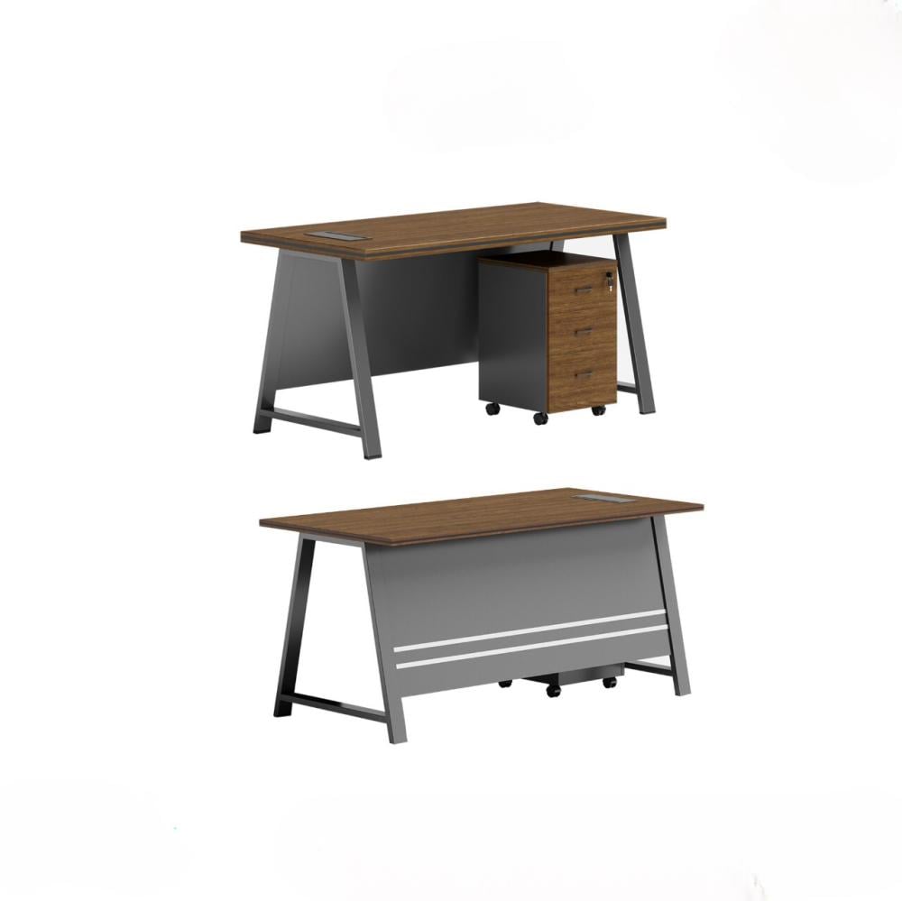 يتميز تصميم هذا المكتب بمزيج من الخشب المتين باللون البني مع لمسات عصرية من الأرجل والقواعد باللون الرمادي مما يخلق تباينًا بصريًا جذابًا يضفي طابعًا عصريًا وفاخرًا على مكتبك.