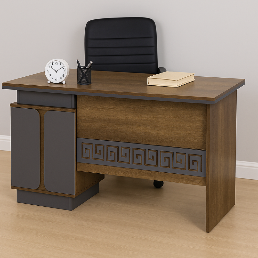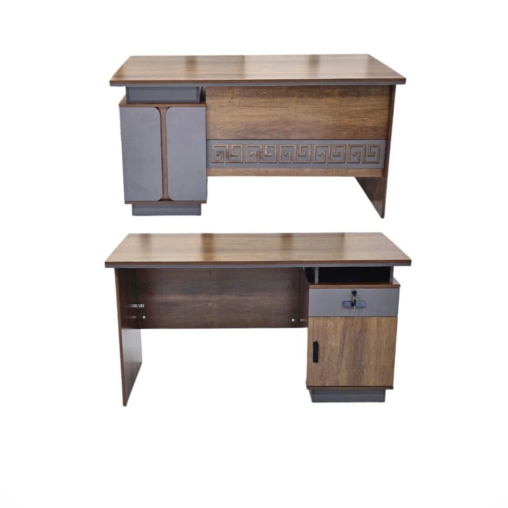 تحتاج مكتب خشبي انيق ومتين ؟ هذا المكتب أفضل خيار مناسب للاستخدام في المكاتب أو المنازل، يتميز بخطوط عصرية وزخرفة هندسية أنيقة تضيف لمسة جمالية للمكان. يوفر سطحًا واسعًا للعمل مع وحدات تخزين عملية لتسهيل تنظيم الأدوات والملفات.
